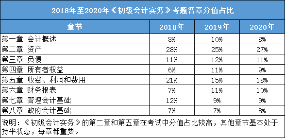 2021初級會計考試《初級會計實務》只有重要的考點,沒有重點的章節(jié),每章都很重要,所以都要認真去掌握;本科目的第二章和第五章分值占比是比較高的,其他章節(jié)都是持平,每章節(jié)都會涉及到,所以每章都很重要。