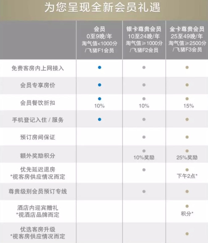 萬豪高級會員禮遇:很多人第一次認識飛豬F2/F3會員就是因為和萬豪合作,飛豬金已經(jīng)成為萬豪的經(jīng)典玩法,成為不少人入坑萬豪的首選,飛豬F2會員可以匹配萬豪銀卡,F(xiàn)3會員可以匹配萬豪金卡。